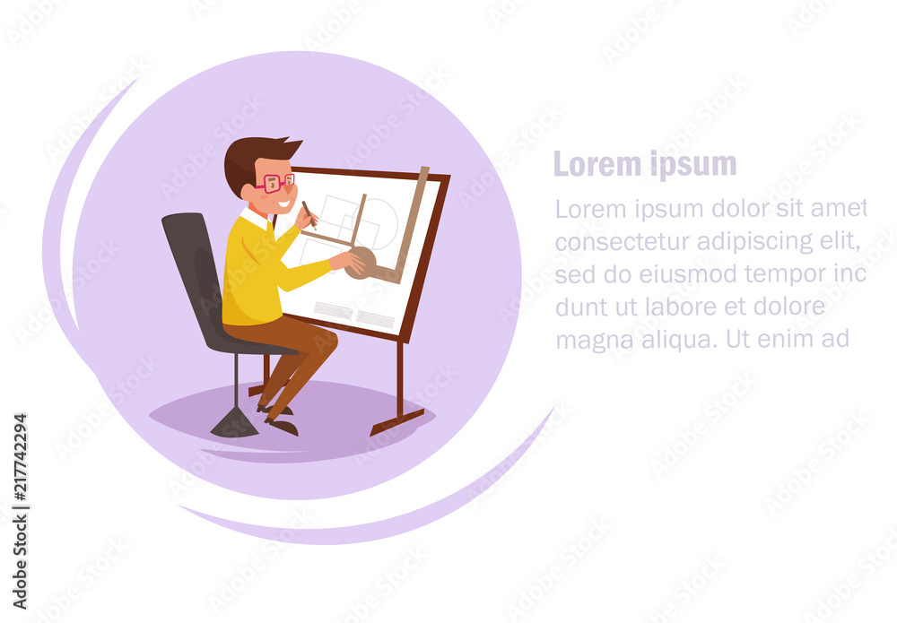 Architect Drawing Board Vector Flat Cartoon Isolated Art On White Background Flat Stock Vector Adobe Stock